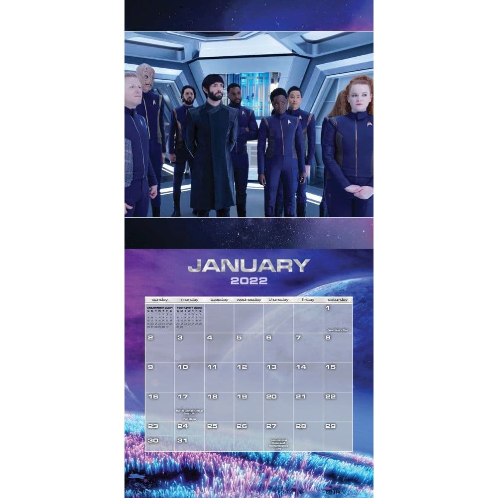 The Next Generation 2022 Wall Calendar marks the first time in 20 years that this series has been available as a collectible calendar Generous grids for adding appointments and reminders Includes major official world holidays Each spread opens to 12 inches x 24 inches. The 2022 wall calendar will feature the cast and images from the hit show. Discovery boldly introduces all-new new characters conflicts and adventures. The 2022 wall calendar will feature the cast and images from the hit show.